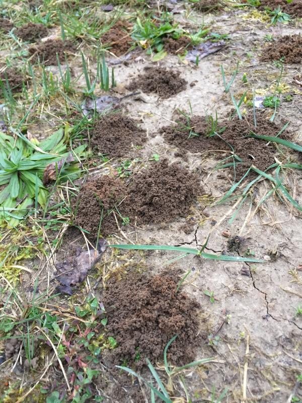 Ich habe heute (gestern waren sie noch nicht da) winzige Erdhäufchen in der Wiese entdeckt. Im Boden hat es ein Mini-Loch.