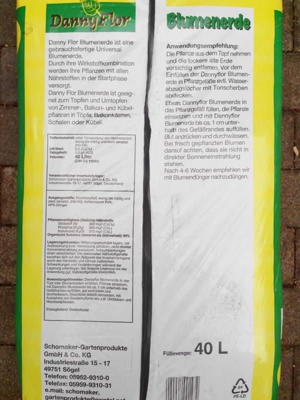 Ist ja an allererster Stelle Torf - ich glaube Torf alleine/Blumenerde ist eh meist nicht so das beste Substrat ??? Vielleicht wenn man es 50/50 mit normalem Boden/Mutterboden mischt - mal probieren?