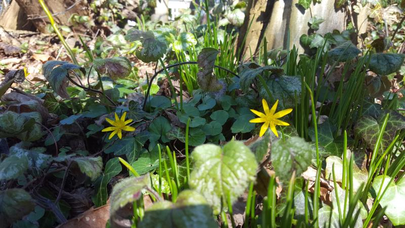 Dezentes Gelb des Scharbockkrauts, an anderer Stelle im Garten ist von dezenter Zurückhaltung dieser Pflanze ( leider ) nichts zu spüren.