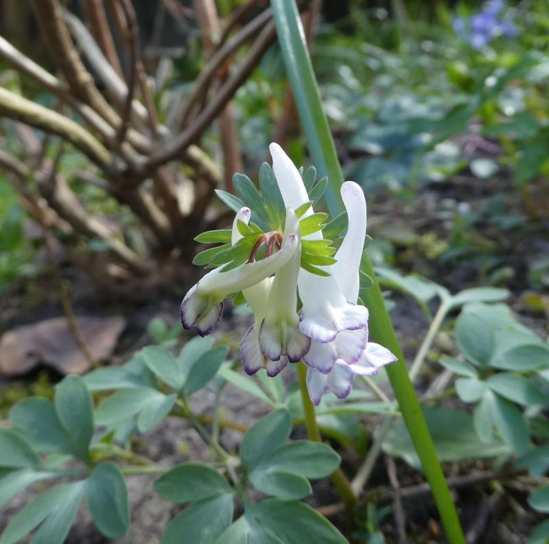 Heute war es sonnig. Die weißen Corydalis sind wieder in der Überzahl.