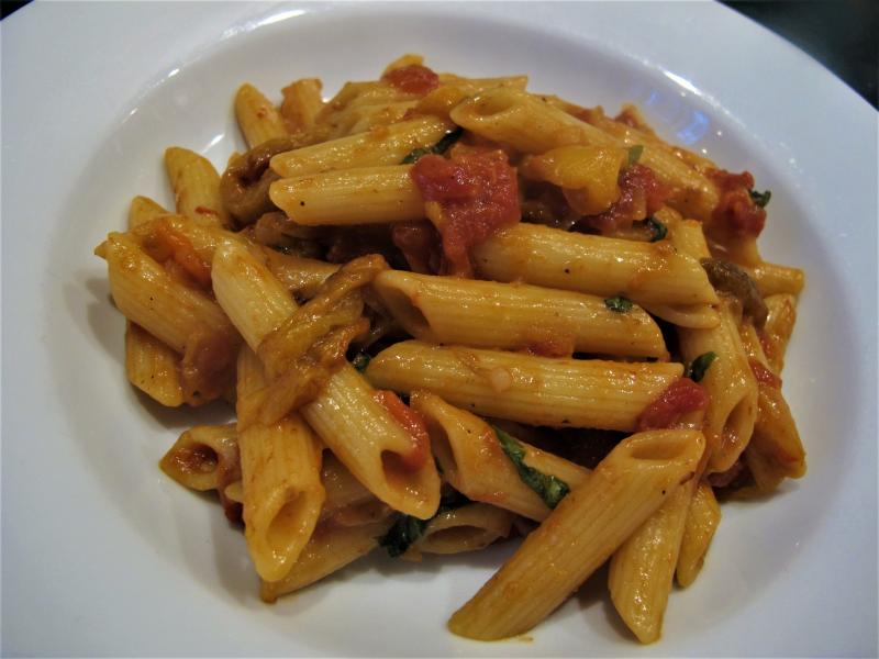 Gestern wurde die Knödlserie mit Semmelnknödeln und Würzlinsen abgeschlossen, Restknödl gibt es heute Abend geröstet mit Ei und Salat. Heute Rigatoni alla peperonata, Endiviensalat.