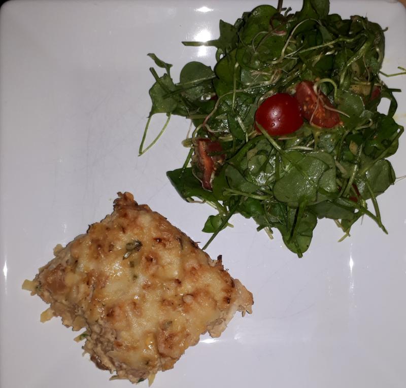 Gestern: Hähnchenbrustfilet, eingewickelt in Streifen von magerenem Speck. Angebraten und abgelöscht mit Tomaten; abgeschmeckt mit S &P, Paprika edelsüß und scharf. Sauce verfeinert mit Parmesan. Dazu Reis und Endiviensalat.