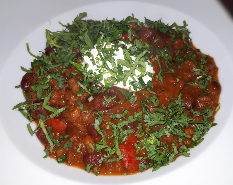 Heute gab's Chili sin carne mit Vinschgerl und Endiviensalat