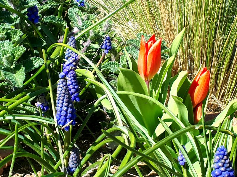 Alle roten Füsilier Tulpen im Steppenbeet angeschlagen. Hier leuchten sie noch.