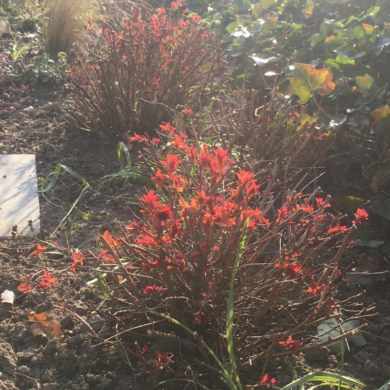 Meiner treibt immer karminrot aus (hier derzeit noch nicht so weit). Ich dachte, das ist der Normalzustand?