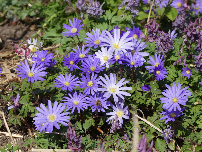 Daneben blüht noch eine vorwitzige Küchenschelle und ein paar Buschwindröschen: