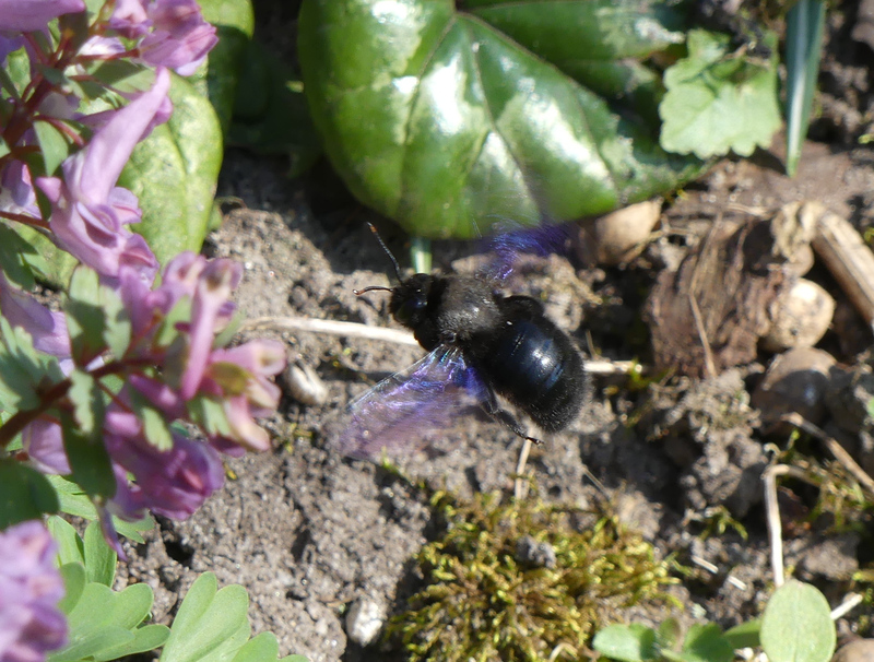 Die schwarze Holzbienen tummeln sich hier auch schon. Bis ich die Kamera geholt hatte, waren sie schon wieder weg. Vielleicht später nochmal...