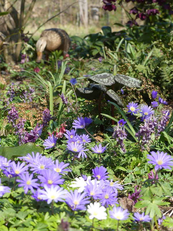 Anemone blanda hingegen färbt einige Beete blau.