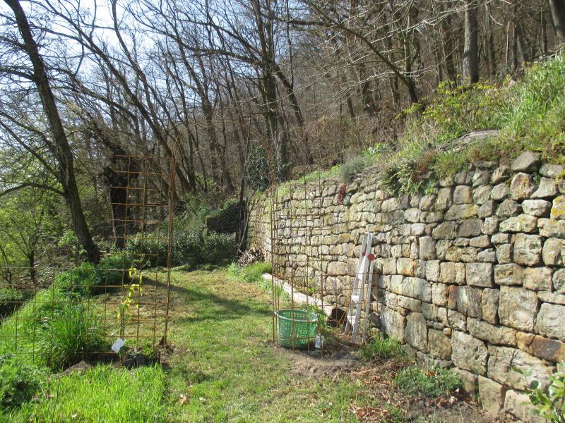 Das Ganze ist stabil dadurch, dass ich Matten im rechten Winkel gebogen habe, ca. 20 cm in den Boden gehauen habe, mit der Mauer verbunden und noch zusätzlich 10er-Eisen einen Meter in den Boden versenkt und mit dem Gestell verbunden habe.