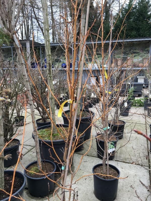 Streu Eranthis hyemalis-Samen drunter - die geben dann die gelben Flammen, die im Gelb-orangerot der 'Midwinter Fire'-Äste auslaufen ;)