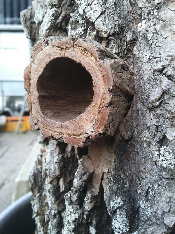 Ich habe auch dünnere hohle Äste (Robinie) gesammelt und mache damit eine Einstiegsröhre. Die ist etwa 10cm lang. Vielleicht bietet das etwas Schutz gegen Eichhörnchen oder Marder.dmks hat geschrieben: ↑25. Mär 2020, 22:25Hab trotzdem mal 'ne Fachfrage: Möchte einen Baumstammteil in zwei Nistkästen für die eher kleinen Vögel zurechtmachen. Ist Grauerle oder Zitterpappel - und seit drei Wochen auf der "Trocknung" weil innen so naß, daß man mit der Hand Wasser auspressen konnte.
