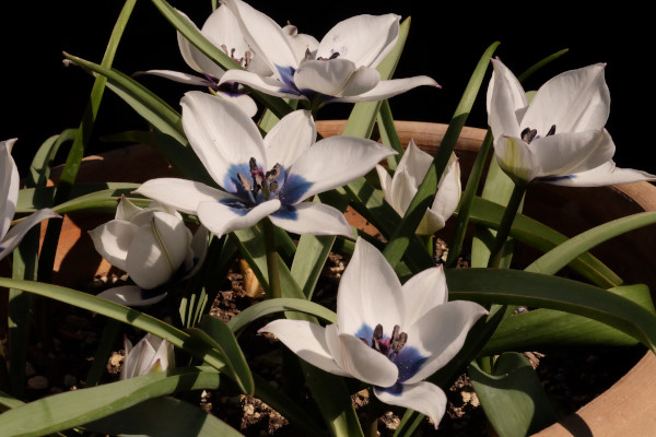 Dieses Jahr habe ich die Tulpen humilis 'alba coerulea oculata' in eine Schale gepflanzt, da kann ich besser düngen. Im Garten bekomme ich sie nie durch :-\