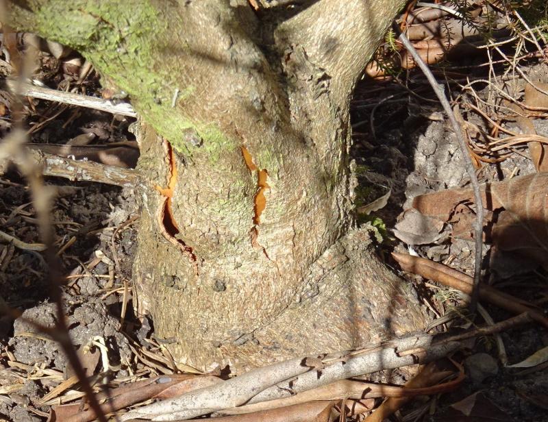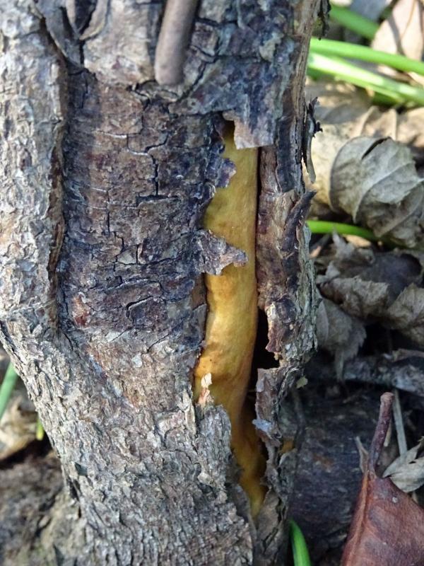 Das habe ich noch nicht so erlebt. Wir hatten eigentlich keinen Winter. Doch die Frosteinbrüche (bis -6.8°C) Ende März /Anfang April haben die voll im Saft stehenden Rhododendron übel zugerichtet. Bei ca. 10 Prozent (Tendenz steigend) aller Pflanzen sind tiefe Rindenrisse und Absplitterungen zu erkennen. Es droht der Totalverlust vieler Pflanzen.