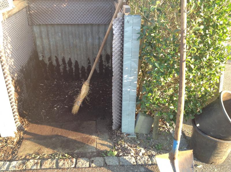 Ich habe auch solche Streckmetall-Kompostboxen. Wenn ich sie befülle, kleide ich sie inwendig mit Pappe aus (große Kartons, oder was sonst so an Pappe anfällt). So bleibt es in den Boxen schön warm, und die Füllung trocknet nicht so schnell aus. Außerdem rieselt auch nichts raus.