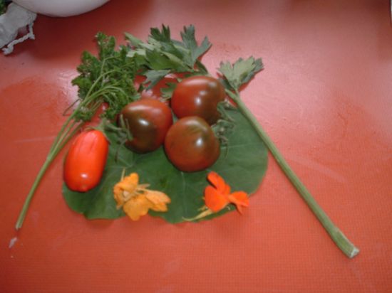 Schööön, Nina. ich hatte gestern auch ein Kilo Tomaten (das Dach hat was genutzt), 3 kg Kohlrabi (auch einen siamesischen), verschiedene Kräuter, 1 kleinen Zucchino und viele Birnen.