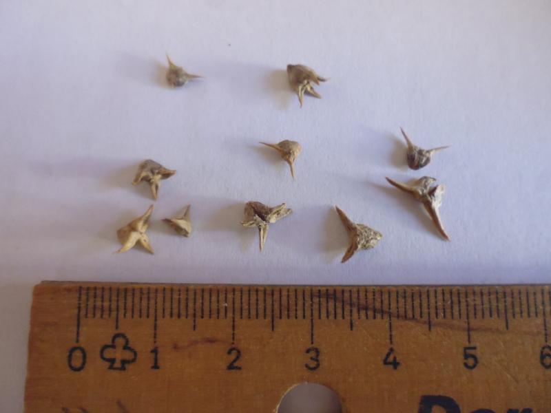 Die Samen sind sehr hart und spitz, die meisten haben zwei oder drei Spitzen, eine auch vier.