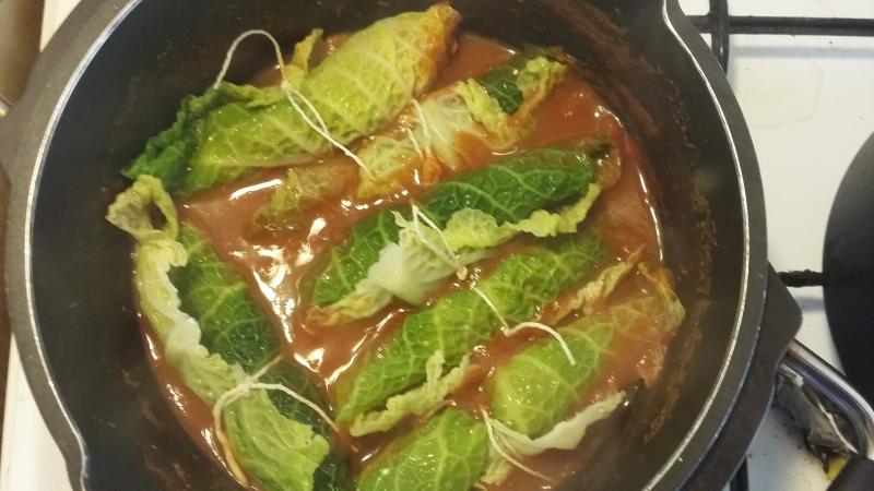 Und gestern nach Heikes Rezept Wirsingrouladen in Tomatensauce, allerdings mit Hack-Fetafüllung; dazu Farfalline. (Heute gab es dann die Reste). :D