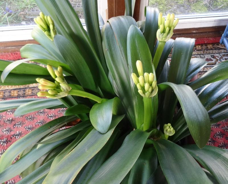 Ich glaube, ich stelle jedes Jahr ähnliche Bilder von unserer Clivie ein. Aber sie begeistert mich auch jedes Jahr. In diesem Jahr hat sie neun Blütenstengel, so viele wie noch nie. Das war vor einer Woche.