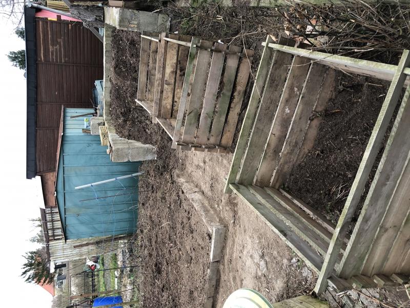 Kompostplatz von einem großen Garten und einem Gartenbesitzer, der gesellschaftlich hart engagiert ist.
