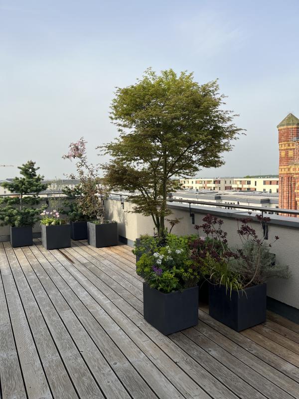 passende Töpfe dazustellen, dass noch mehr Grün ( in unterschiedlicher Höhe) seinen Platz findet? Wenn das überhaupt Sinn macht von Terrassengrösse und Platz her.