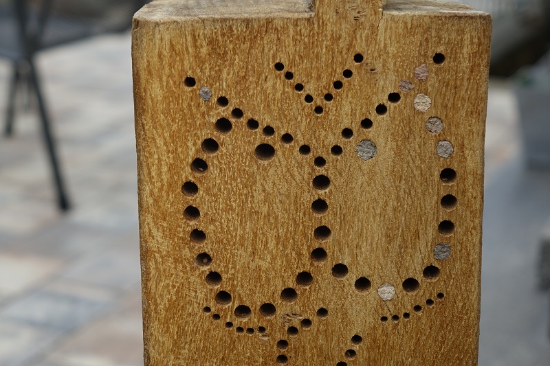 Die Holzbiene hat ihn schon angenommen, was jetzt noch fehlt sind die kleinen 2-3mm Löcher. Sollte ich da ein paar Bohren oder auf Holzkäfer warten? Im letzten Stamm ging es von alleine.