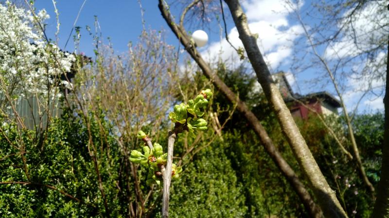 Da ich Ertragsprobleme mit der Büttners habe, habe an zwei Ästen die Dönnisens dran veredelt. Nun fing die Büttner gestern an zu blühen und ich konnte wieder einmal das selbe Problem beobachten, wie ich es letztes Jahr sehen konnte, die Dönnisens blüht doch einige Tage später. Im näheren Umkreis stehen ca. sechs weitere Kirschbäume in meinen und in Nachbarsgärten, dabei blüht nur ein Baum im Nachbars Garten. Alle anderen blühen noch nicht und sie werden auch nicht so schnell. Auf dem Bild kann man die Büttner von heute sehen.