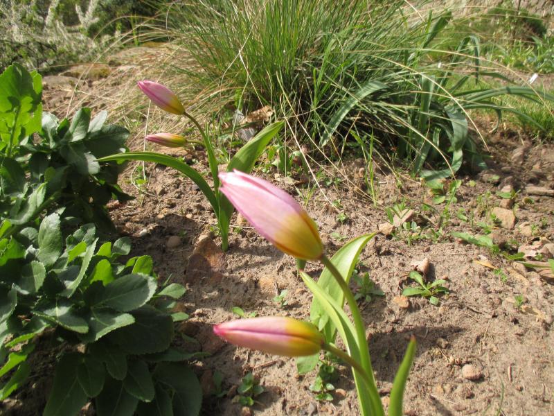 Tulipa whittallii major scheinen die hiesigen Bedingungen zuzusagen. Sie stehen gesund da und zeigen ordentlich Zuwachs. Das kann ich von kaum einer anderen Tulpe behaupten.