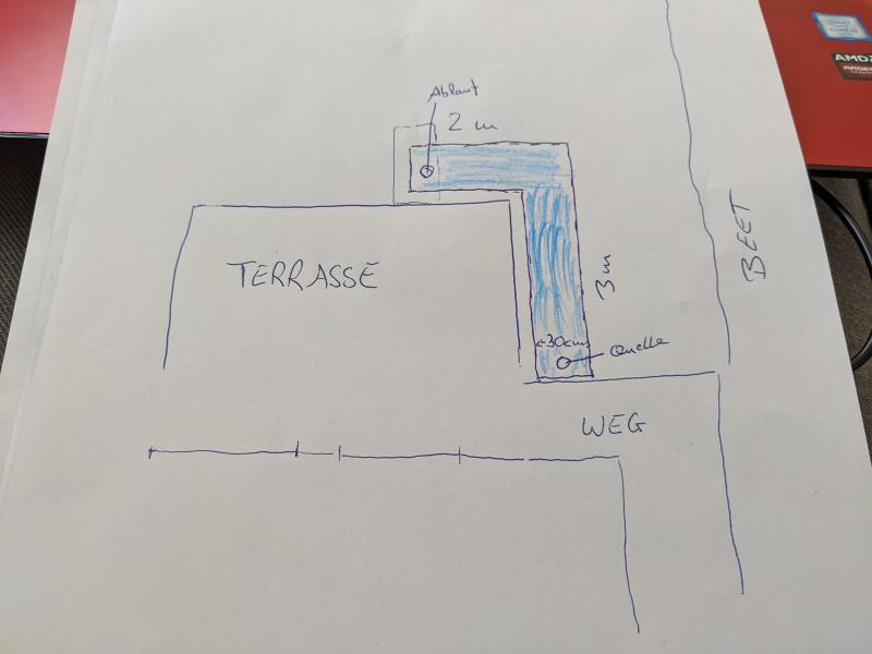 möchte ich gern einen gepflasterten Bachlauf / Rinnstein an unserer Terrasse (Gesamtlänge 5m) erstellen.