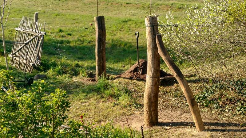 GG hat gestern und heute Tore am neuen Zaun am Bach eingebaut. Da musste ein Zaun für die Hunde hin, weil meine neuen Schätzchen den Bach als Grenze partout nicht als Grenze anerkennen wollen.