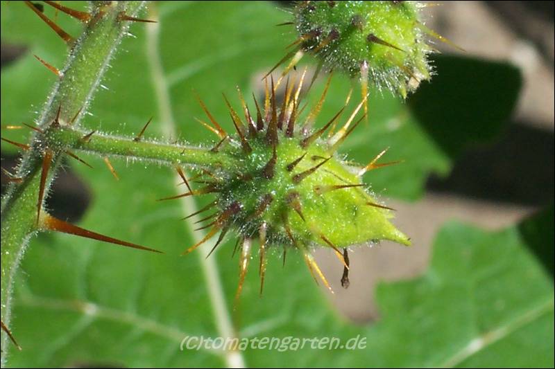 zweitens: ne litschi-tomate; noch stachelig und unreif: