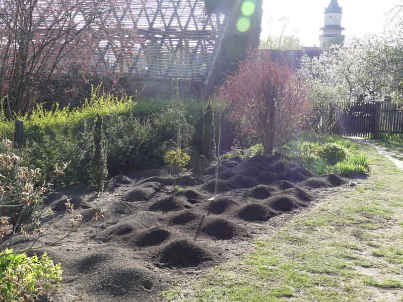 Ich habe weiter Kartoffeln gelegt, zehn Stück sind immer noch übrig ::), einen Behälter mit Kompost leergemacht und festgestellt, dass den Nichtwinter über dort fleissig Wurzeln von Brennesseln und Saponaria hinein gewachsen sind, die den Kompost fest hielten.