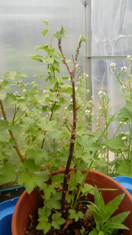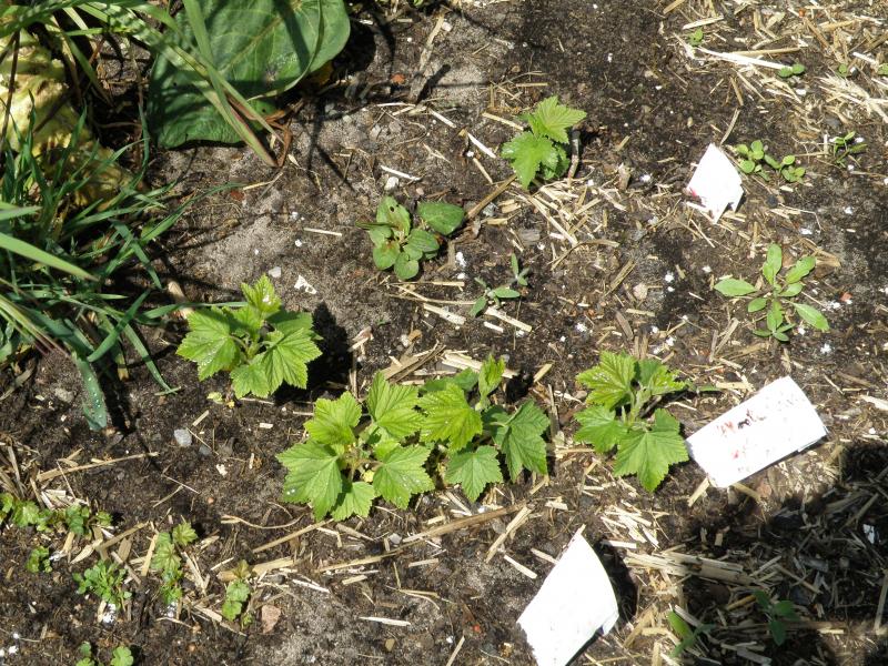 Dieses Jahr habe ich auch viele Pflanzen die zum ersten mal blühen. Zum Beispiel diese aus Samen gezogene Pflanze,, die eine Schwester der unteren, weißen Johannisbeeren ist. Sie wächst schön aufrecht. heute kam sie an einem neuen Standort in die Erde