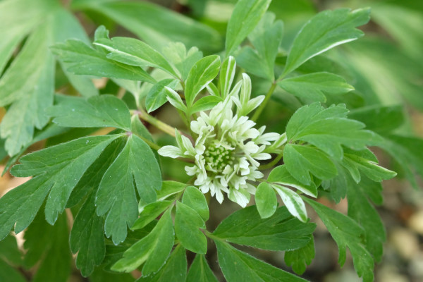 Hier 'Thekla' mit 'White Cup' und Jeffersonia dubia im Hintergrund.