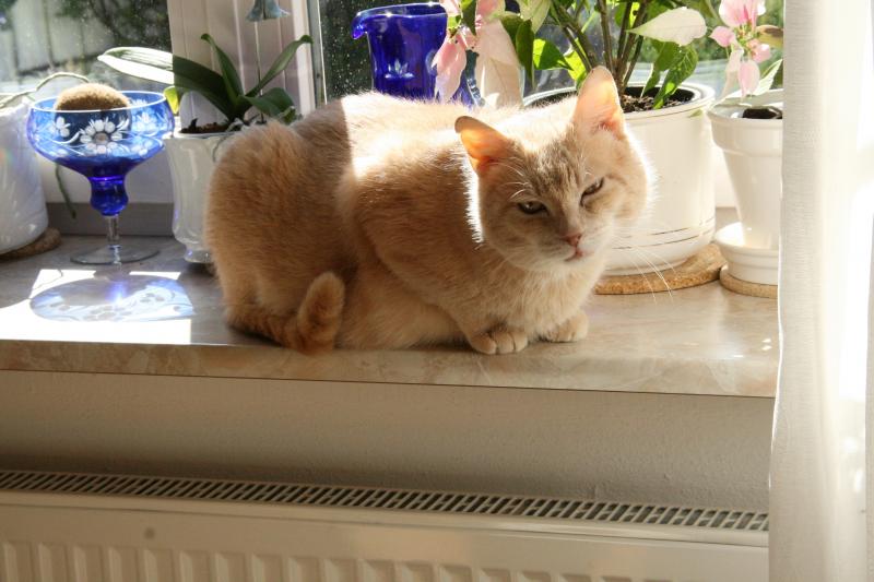 Danke für Eueren lieben Worte. Vorher lag er im Esszimmer auf dem Fensterbrett, ganz vorsichtig hinter im die ganzen Orchideen und alles mögliche. Er ist ein schlaues Kerlchen.