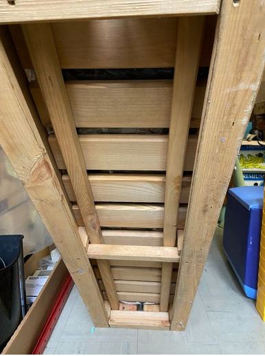 Und wegen dem Schimmel. Unten ist der Pflanzentrog zum Glück nicht mit der ganzen Fläche zum Balkonboden bündig.