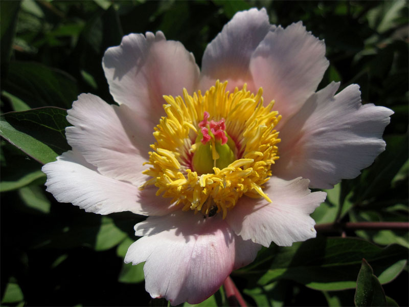die gelten ja bei Liebhabern als minderwertig und nur die reingelbe Paeonia mlokosewitschii sei die echte. Wie ich jetzt gelernt habe, nennt man die rosafarben getönten oder getuschten Paeonia x chameleon.
