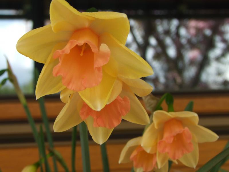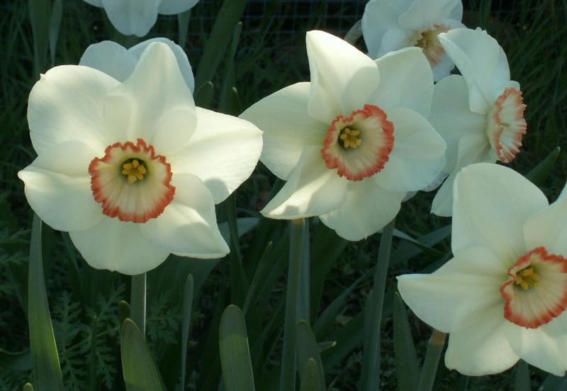 Ich habe seit letztem Jahr so kleine zweifarbige Narzissen,sie heißen 'Blushing Lady'.