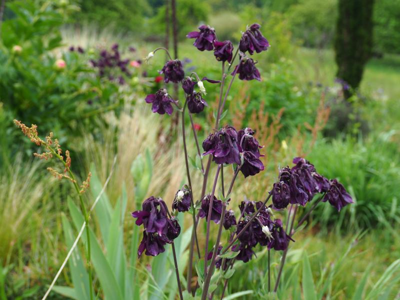 die Akeleien, Bart-Iris und Päonien füllen den Garten plötzlich nach dem Regen.