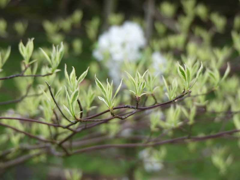 Auffallend sind derzeit auch die Austriebe der panaschierten Hartriegel.