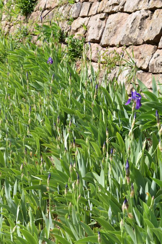 toller Standort, was für Mengen! Oben die blaue ist Iris germanica und bei der gelben habe ich keine Ahnung.