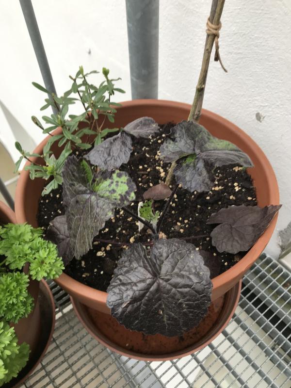 Von mir mal etwas noch nicht blühendes, ein Sämling von Lunaria annua 'Rosemary Verey', mit sehr dunklem Laub. :D
