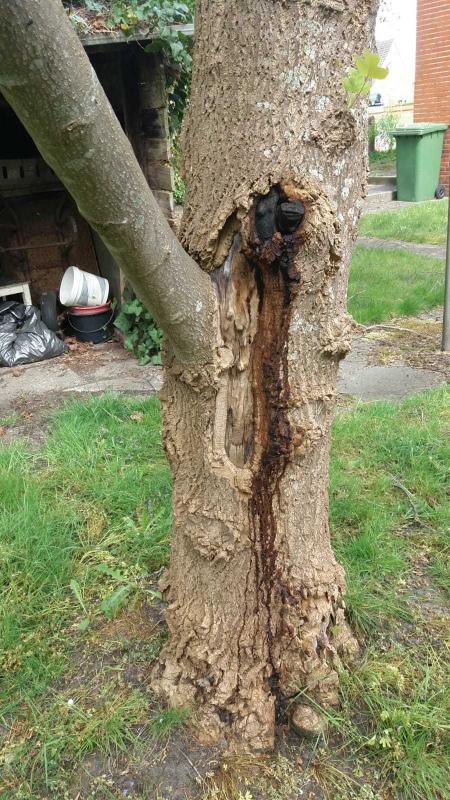 Im Garten der Schwiegermutter steht seit gut 20 Jahren ein Liridendron. Ca. 1m vom Boden aus ist eine nasse Stelle an einem Astloch, dazu sieht der Stamm verändert aus. Er steht auf sehr leichtem Sandboden (Geest) im Elbe-Weser-Dreieck. Vom Laub her sieht er gut aus.