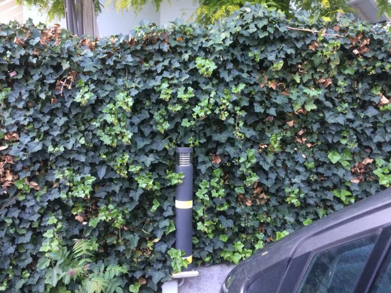 Und gleich gegenüber ein Zaun mit "normalem" Efeu: