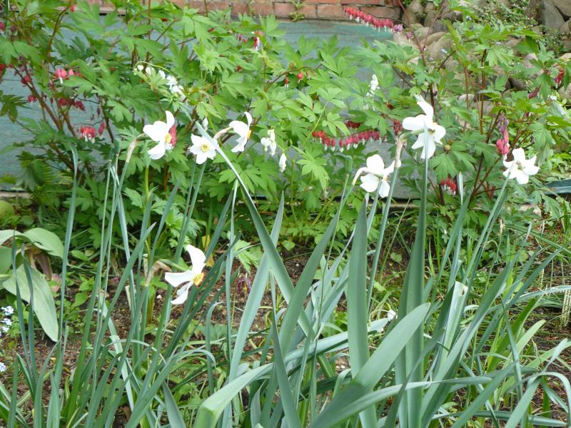 Hier bilden meine ersten Narcissus poeticus eine gute Kombi mit den Dicentras.