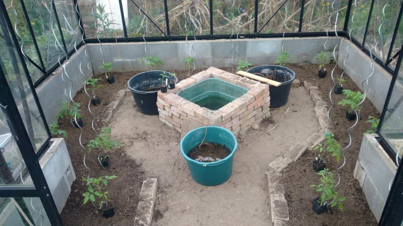 Meines ist ein schnödes Foliengewächshaus, aber wie Du habe ich heute Kompost, Algenkalk und Kaliumsulfat (auf der linken Seite) eingearbeitet. Irgendwie sollte ich noch Magnesium hinzufügen.