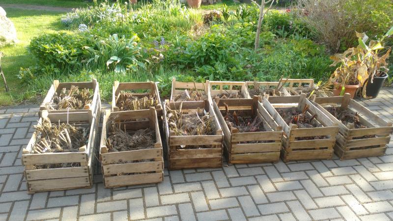 Morgen werde ich mich wohl ans verbuddeln der Canna und Dahlien machen. Der überwiegende Teil der Kisten: