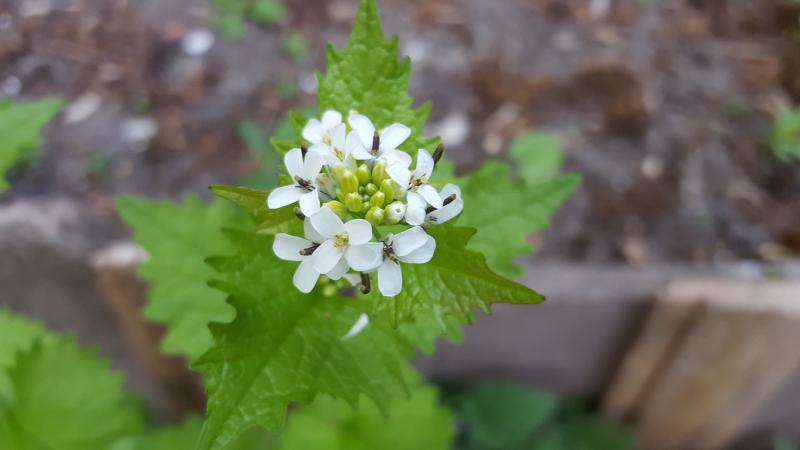 Muß ins rechte Licht gerückt werden, wird ja sonst gerne als nicht erwünscht schnell entfernt : Blüte der Knoblauchrauke.