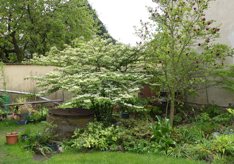 Wie wär's mit Viburnum 'Mariesii ', dem Etagenschneeball, gerade beginnt die Blüte. ;D