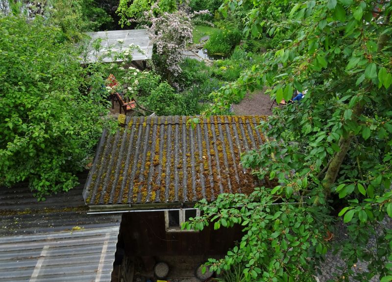 Man hat von meinem Wohnzimmer nur einen Blick in einen unspektakulären Teil des Gartens, aber ich finde die Perspektive über das eine Grünzeug hinweg auf das weitere Grünzeug gerade dennoch toll![Bild]()