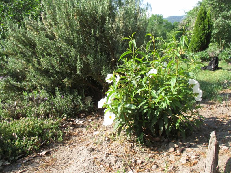 In meinem Sand gedeiht gut Cistus x laxus 'Snow White'. Ich habe ihn 2018 bei Hügin erworben und in die Nähe der Rosmarine gesetzt.